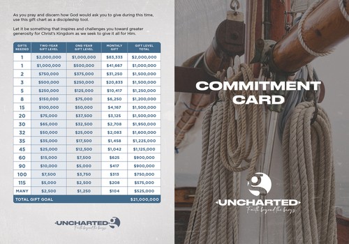 Need assistance navigating the Uncharted Commitment Card? We are here to help! Watch this video for a walkthough of how to pray over and fill out your Uncharted Commitment.